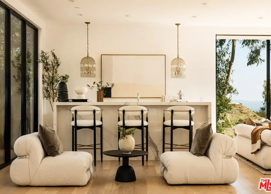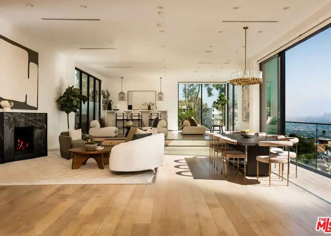 Showcased above the world-famous Sunset Strip, this modern masterpiece captures jaw-dropping panoramic city views through floor-to-ceiling glass walls. Situated on a rare double lot, the home exudes sophistication with French White Oak floors, Italian marble, and an open layout designed for seamless indoor-outdoor living. The updated chef's kitchen with Wolf appliances flows effortlessly to glamorous entertaining spaces, an expansive pool/spa, multi-level patios, and a private dog run, all framed by the glittering LA skyline. Privately tucked away on a cul-de-sac just moments from Sunset, this architectural retreat defines luxury, privacy, and Hollywood Hills living at its finest.